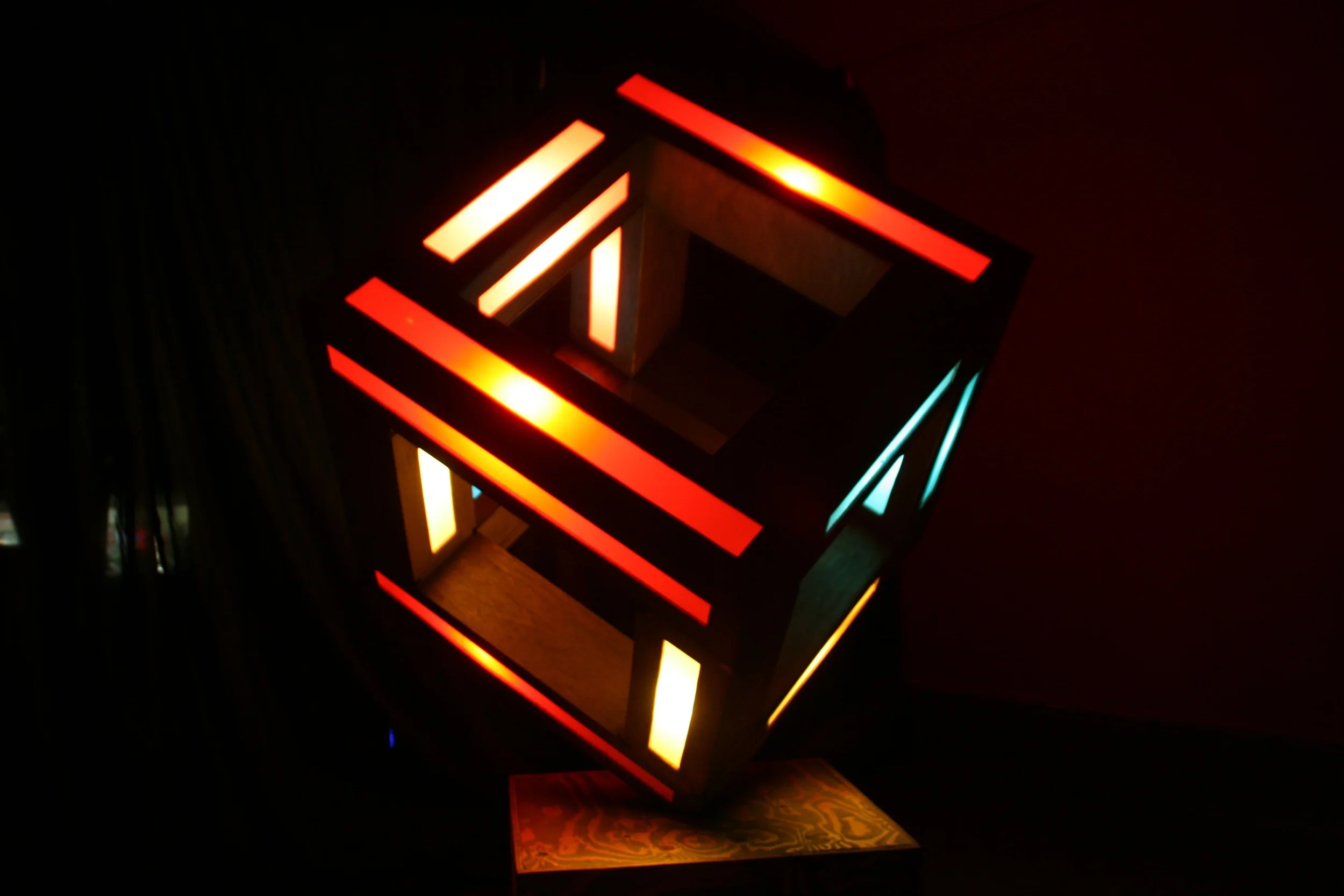 This sci-fi inspired piece comes to life when people approach it. Motion sensors trigger changes in music, light, and color, creating an illusion of sentience.